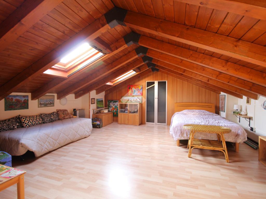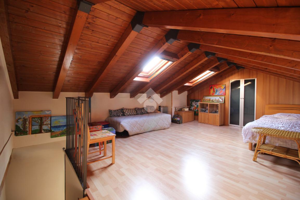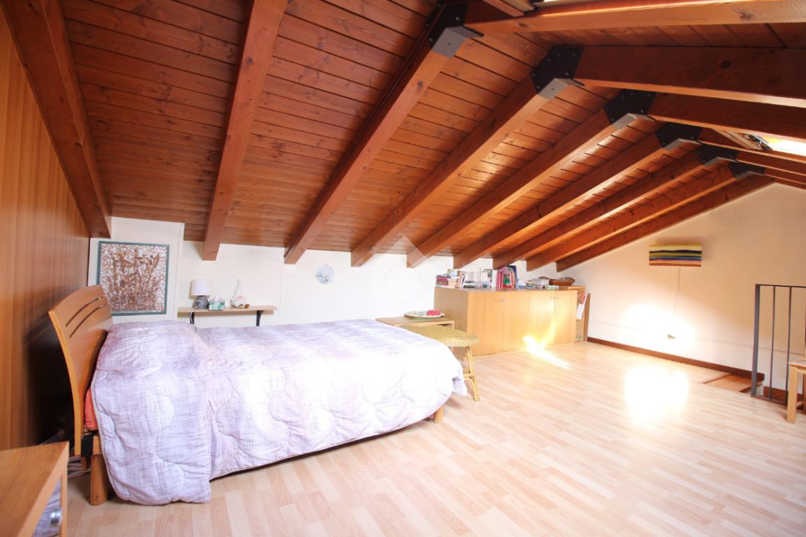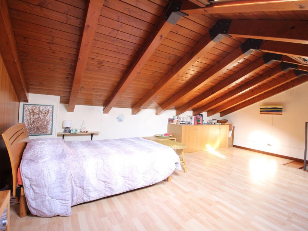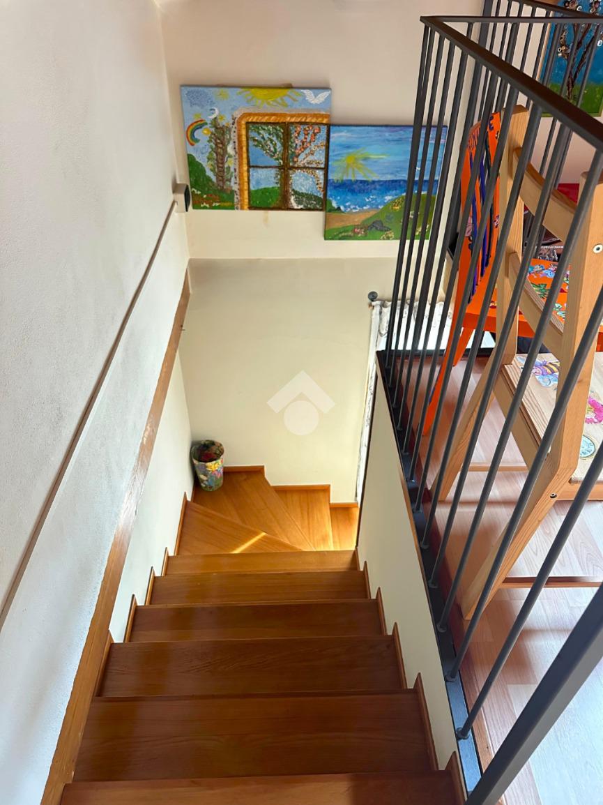 Una scala in muratura accompagna al piano superiore, dove si sviluppa la zona notte: qui troviamo una camera da letto, resa ancora più confortevole dalla presenza di una bella e funzionale cabina armadio, ideale per organizzare al meglio gli spazi.